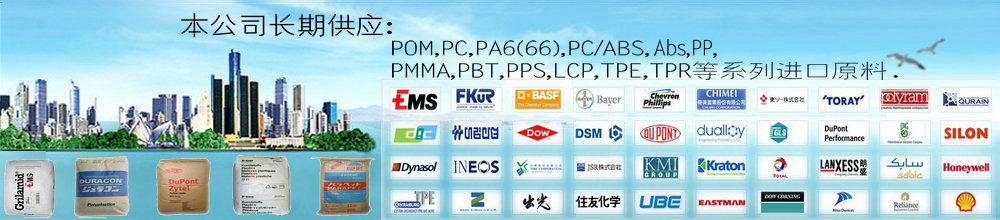 東莞市金滬新材料有限公司是一家擁有貨物進出口權,技術進出口權以工程塑膠原料為主打行業的有限責任公司, 東莞市金滬新材料有限公司經過不斷開拓進取,良好的經營和服務得到新 老客戶的大力支 持和好評,業務蒸蒸日上,規模不斷擴大. 公司自成立以來,以質量第一,信譽第一,價格合理,客戶至上的服務宗旨,我們已經為大量客戶提供了穩定的PC塑膠原料,(尼龍)PA66塑膠原 料,(合金)PC/ABS塑膠原料,(賽鋼)POM塑膠原料,(亞克力)PMMA塑膠原料,PPS塑膠原料,PPA塑膠原料,杜邦PA66,杜邦PBT,寶理POM,沙伯基礎PC,拜耳PC,拜耳TPU,杜邦POM,陶氏POE,寶理PBT,臺 化PP等貨源供應,并且贏得了客戶的大力支持和長期合作.公司塑膠原料經營范圍:一、工程塑膠原料:PC,PA6,PA66,POM, PBT,PET,PMMA,PCT, ASA,PETG,PCTA,PCTG;二、通用塑膠原 料:ABS,HIPS,GPPS,PP,PE,阻 燃ABS,EVA,K(Q)膠,AS(SAN);三、熱塑性彈性塑膠原料:TPE,TRP,TPU,SEBS,SBS,EPDM,EAA,POE, TPO;四、合金原 料:PC/ABS,PC/PMMA,PC/PBT,PC/PET,PC/PTFE,PC/PS,PC/PA,PA/ABS;五、特種工程塑膠原料: PPO,PEI,PSU,PES,PPS, LCP,PEEK,TPX,PES,PFA,PTFE,PVDF,ETFE。 公司將以優質的產品,優惠的 價格,卓越的經營服務理念與您攜手并進,互惠互利.歡迎您前來參觀洽談,友好合作,共創輝煌!