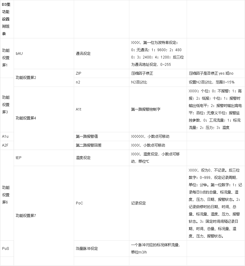 D3型轉(zhuǎn)換器功能設(shè)置對(duì)照表