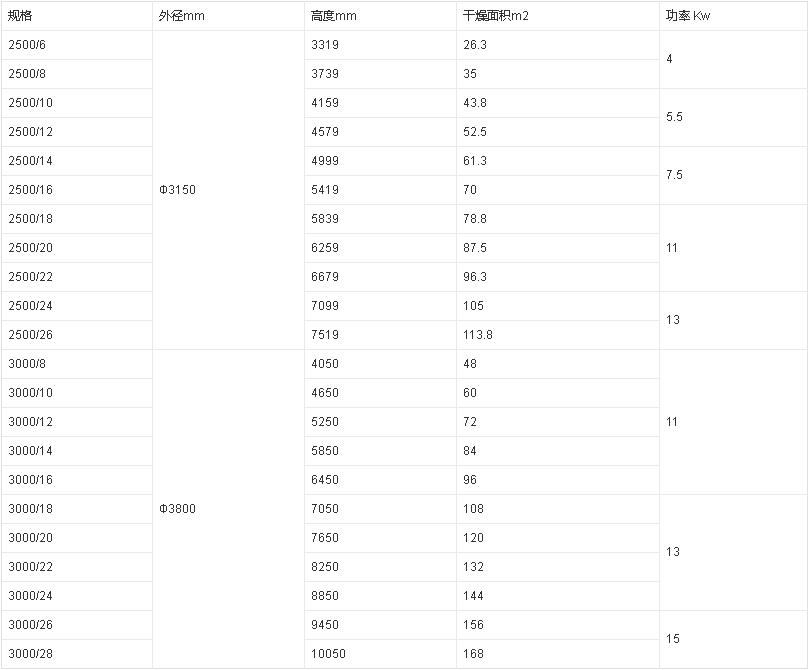 2、動力消耗低、噪音小。由于干燥過程中料層很薄,主軸轉速低,物料傳送系統所需的功率小,電耗很少,其全套干燥裝置動力消耗僅是對流方式傳熱裝置動力消耗的1/5~1/7,且噪音很小。