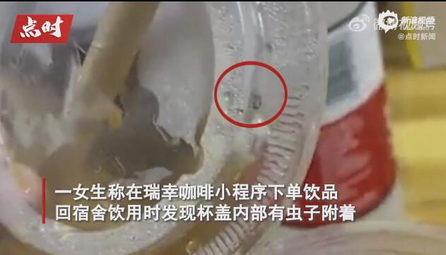 湖南湘潭,一女生稱在瑞幸咖啡小程序下單飲品,回宿舍飲用時發現杯蓋內部有蟲子附著,已向12315熱線投... 查看