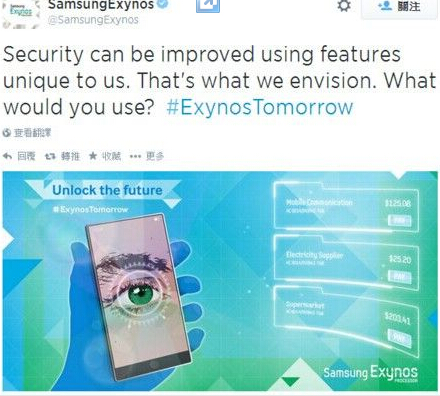 7月14日上午消息,三星Exynos推特官方賬號(hào)的一則消息以“解鎖未來(lái)”為主題,配以一張掃描眼球的示意圖片,似乎暗示即將推出的三星GALAXY Note 4將引入視網(wǎng)膜掃描的功能。
