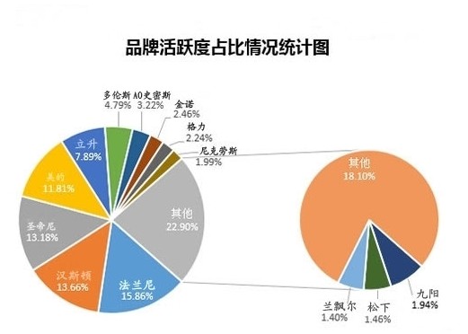 家用凈水器激烈競爭趨勢已突顯,其中法蘭尼以15.86勇奪第一位,筆者通過對以上的品牌分析,發現品牌活躍主要體現在以下四個方面: