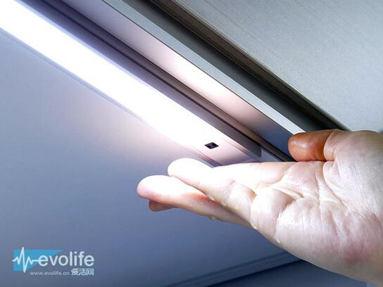 除了易于固定的雙面膠,ALT-1090IR LED燈還有兩個人性化設計之處,它的電源線長達2.2米,而且直徑非常細,安裝和固定同樣方便。另外,燈具的開關使用了非接觸式設計,內置的傳感器能感應人手動作,即使手指是濕的也能正常開關燈具。