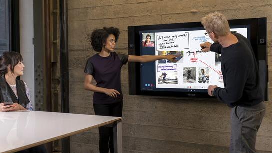微軟將從7月份開始接受84英寸Surface Hub的訂單。這款產品配備了攝像頭和麥克風,能連接至不同品牌的手機和平板電腦。微軟硬件業務副總裁邁克·安杰洛(Mike Angiulo)表示,84英寸版Surface Hub的價格是傳統遠程會議系統的一半。