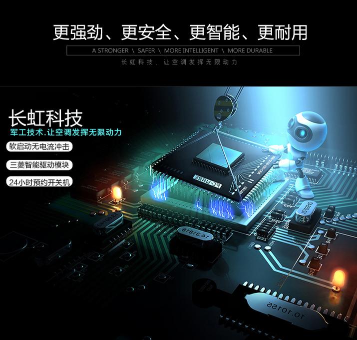 軍工品質確保空調在惡劣的使用環境下使用10年以上,國家專利軸流風扇送風更遠更舒適,高效隔音阻尼材料使工作噪音進一步降低,超寬電壓,環保節能給用戶更多安全保障。