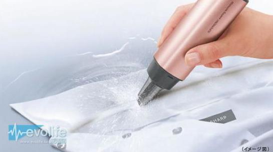 此外,由于夏普UW-A1采用了充電式設計,使用的時候就免除了電源線的困擾,規格尺寸大約為40X168mm,重約200g,輕巧緊湊的外觀設計,也十分便于攜帶。另外,夏普UW-A1還帶有一個類似海綿粉撲的配件,可以用于儲水,出門在外的時候萬一衣服被弄臟了,還可以作為應急清潔。該產品內置電池為900mAh,一次充滿電需要5小時,約可續航30分鐘左右。