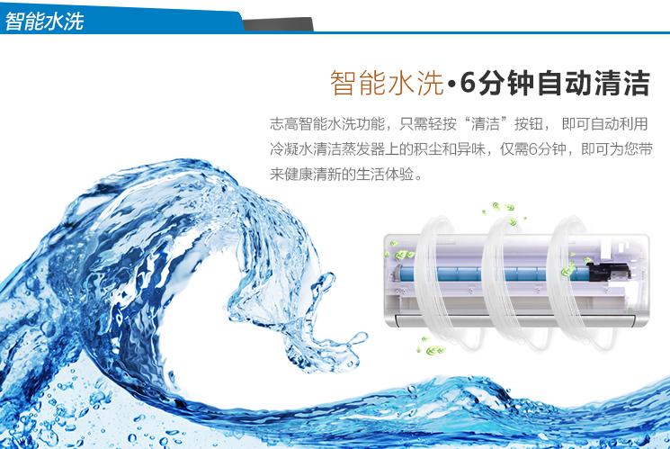 志高NEW-GD18F1H3還擁有6分鐘自動清潔功能。用戶只需輕按清潔按鈕,就能自動利用冷凝水來清潔蒸發器上的積塵和異味,6分鐘就能為你帶來全新的生活體驗。