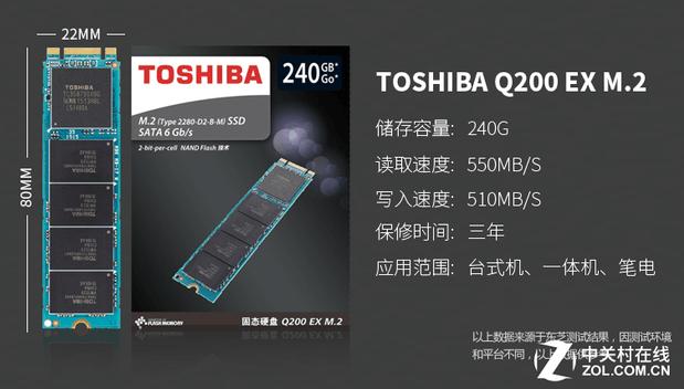 其最大讀取速率達550MB/s,最大寫入速率510MB/s,可酣暢淋漓地運行主流3D游戲、滿足各類主流辦公軟件的高速運行。目前,Q200 EX M.2只提供240GB一款容量型號。
