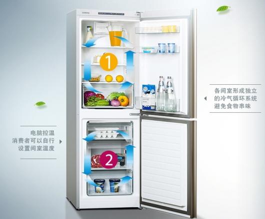 冰箱內部冷藏、冷凍室均采用獨立控溫的電腦雙循環系統。電腦控溫不僅可以讓用戶自行設置間室溫度,而且各間室形成獨立的冷氣循環還能有效避免食物間的串味問題。