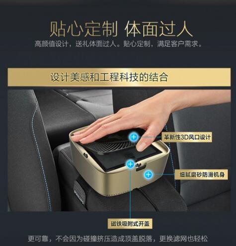 這款車載凈化器的顏值也是頗高,香檳金色的機身搭配細膩防滑的磨砂外殼,手感好、品質高。3D風口設計能有效促進車內氣流循環,加快凈化速度。磁鐵吸附式開蓋方便用戶更換濾網,扣合更嚴實。另外,這款凈化器還配備多種安裝方式,滿足用戶不同需求。