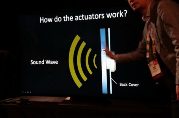 實(shí)現(xiàn)屏幕發(fā)聲的秘密在于電視背部類似激勵器的震動部件,完成電-磁-力的轉(zhuǎn)換,產(chǎn)生驅(qū)動力驅(qū)動OLED面板發(fā)聲。OLED柔性的特質(zhì)受得住極細(xì)微的高速震動,能夠形成波浪式的振動方式,并不會產(chǎn)生物理損傷,經(jīng)過特殊的調(diào)校更容易塑造成振動板的角色。不過這種發(fā)聲技術(shù)所能推動的空氣量有限,所以低頻能量會明顯不夠。索尼的解決方案是在背部支撐板上內(nèi)嵌了一枚低音單元,在不影響整體極簡設(shè)計的情況下,讓聲音實(shí)現(xiàn)最好的表達(dá)。
