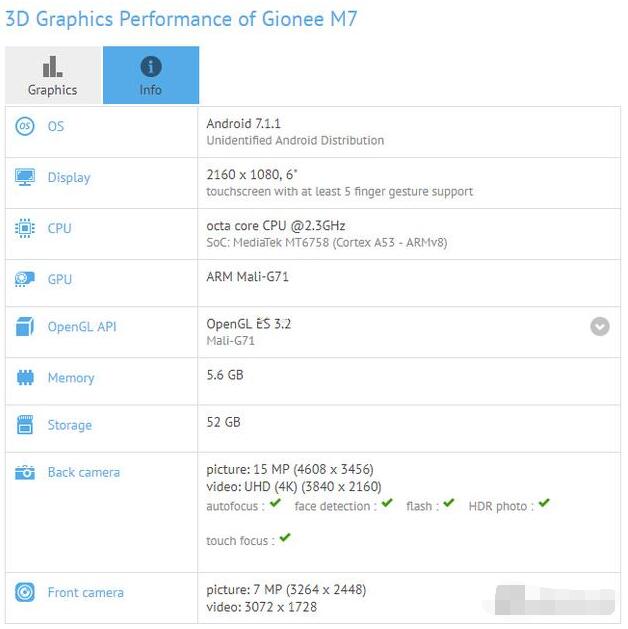 8月14日上午消息 近日在金立M7亮相GFXbench數(shù)據(jù)庫,從中發(fā)現(xiàn)這款手機(jī)的亮點(diǎn)頗多。
