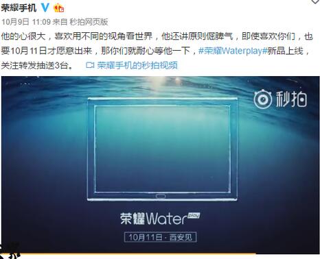 除了手機,榮耀似乎還為粉絲們準備了一款新品。昨天,榮耀官方在微博新品預熱,從官方預告視頻來看,它似乎是一款支持防水功能的平板電腦。