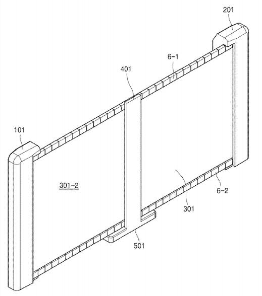 與 LG 的OLED產品不同,三星的這項專利,描述了水平式的卷筒方案。屏幕兩側的卷筒,為其提供了機械結構上的支撐。與垂直的安裝方式相比,要讓柔性顯示屏在水平面上保持平坦,是一個明顯不同的挑戰。