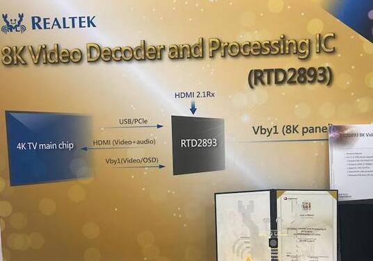 近日,瑞昱展示了RTD2893芯片,這是瑞昱首款8K8K影像解碼與處理芯片。