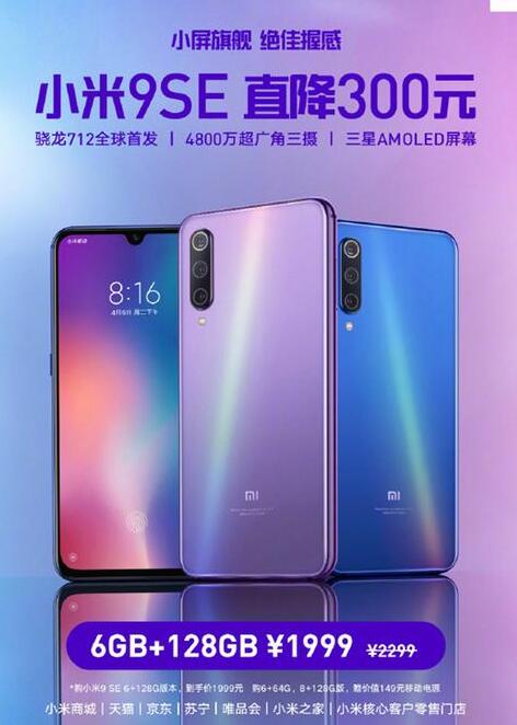 7月9日消息,小米官方宣布9 SE直降300元,6GB+128GB版到手價1999元。