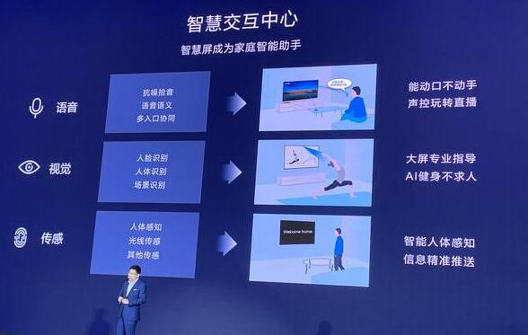 他表示大屏設備在全場景智慧化時代將迎來全新升級。華為將圍繞智慧交互中心、跨屏體驗中心、IoT控制中心、影音娛樂中心,四大中心打造智慧新生活!