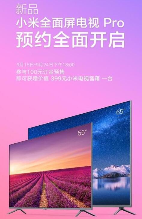 小米全面屏電視Pro也并不陌生,中秋節期間已在小米線下門店亮相,9月15日-24日18點00參與100元訂金預售還能獲贈價值399元的小米電視音箱一臺。