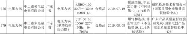 在電壓力鍋方面,抽查了6個省(市)40家企業生產的40批次電壓力鍋產品,其中2批次產品不合格,不合格發現率為5.0%。不合格項目涉及非正常工作、接地措施、螺釘和連接。涉及的企業為中山市愛生活電器有限公司和中山市家樂福電器有限公司。