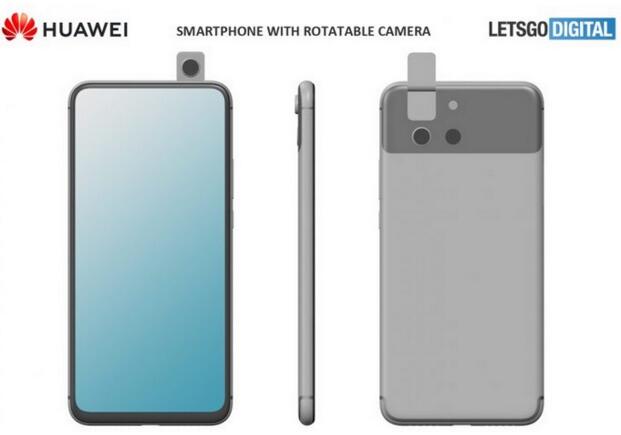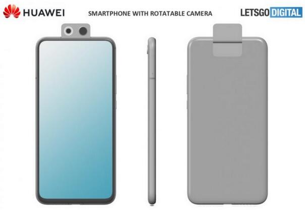 據Letsgodigital報道,近日華為手機的新設計專利曝光,兩項新的設計均采用全面屏和翻轉攝像頭的設計。