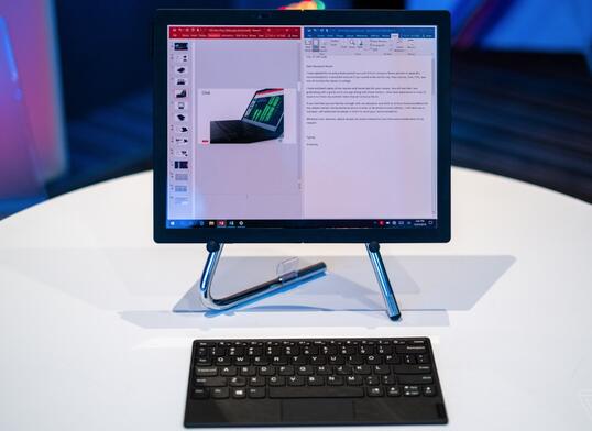 這樣的折疊屏設計的優點在于非常靈活,既可以將屏幕展開獲得更好的視覺體驗,也可以使用內部支架、外接鍵盤獲得類似筆記本的體驗。聯想甚至還為它準備了一個畫架式支架,讓它變成世界上最小的一體機。