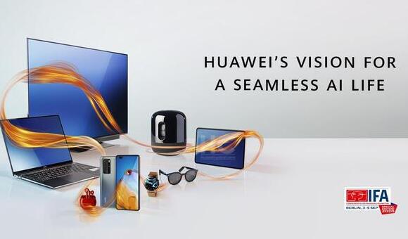預熱海報的主題是“Huawei’s Vision For A Seamless AI Life( “華為對完美智慧生活的愿景 ”)”,圖中出現了智慧屏、P40 Pro手機、筆記本、平板電腦、智能手表、音箱、智能眼鏡、無線耳機等產品。