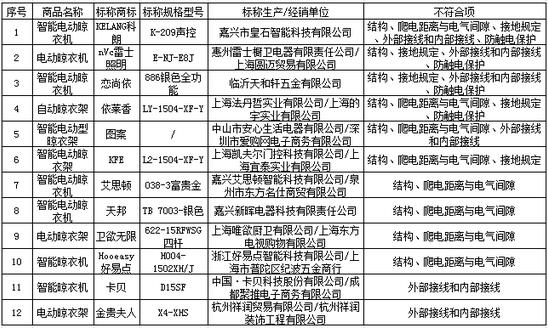用電安全很重要,本次比較試驗對樣品燈具部分的結構、爬電距離與電氣間隙、接地規定、外部接線和內部接線、防觸電保護等涉及用電安全的指標進行了測試。結果顯示,13件樣品符合國家強制標準要求,12件樣品未通過(詳見表一)。其中,標稱由嘉興市皇石智能科技有限公司生產的智能電動晾衣機(標稱商標:KELANG科朗;標稱規格型號:K-209聲控),其燈具部分的結構、爬電距離與電氣間隙、接地規定、外部接線和內部接線、防觸電保護等多項指標均不符合國家強制標準要求。