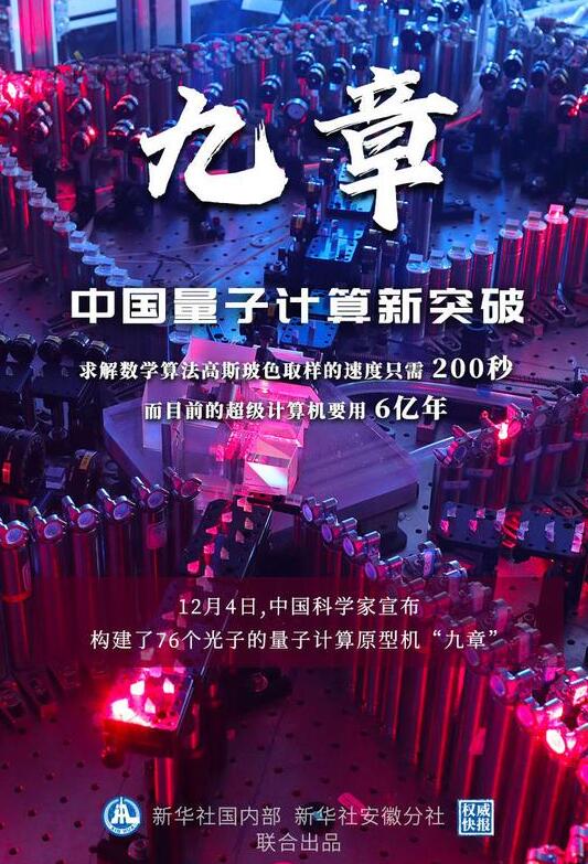 200秒只是短短一瞬,6億年早已是滄海桑田。12月4日,中國科學(xué)技術(shù)大學(xué)宣布該校潘建偉等人成功構(gòu)建76個光子的量子計算原型機“九章”,求解數(shù)學(xué)算法高斯玻色取樣只需200秒,而目前世界最快的超級計算機要用6億年。這一突破使我國成為全球第二個實現(xiàn)“量子優(yōu)越性”的國家。