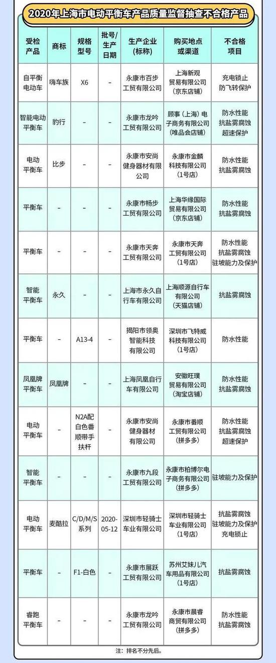 近日,上海市市場監管局公布了電動平衡車的抽查結果。此次抽查選取了本市生產、銷售的20批次電動平衡車,結果有13批次產品不合格。不合格率竟達65%,其中包括永久、鳳凰等品牌。