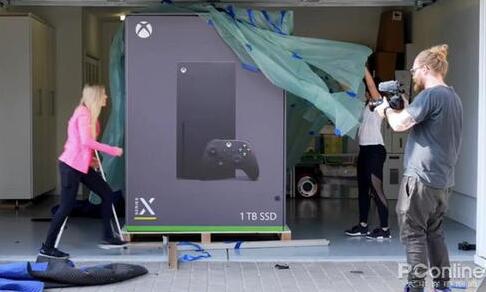 甚至在Xbox Series X/S主機發售前夕,微軟真的造出了一個真人大小的XSX造型冰箱,又能成功收割一波熱度。當時,坐擁百萬粉絲的女主播iJustine還特定搞了開箱,引發一陣轟動。通過開箱視頻,我們可以看到這個冰箱真的是完全還原了Xbox Series X主機的造型:前面有Xbox的logo,通上電之后logo變亮。甚至,當你打開冰箱門之后,會聽到標志性的XSX開機聲。打開之后,內部亮的燈也是Xbox標志性的綠色。但這個XSX冰箱它太大了,以至于視頻中的國外博主iJustine都關不上車庫的門。