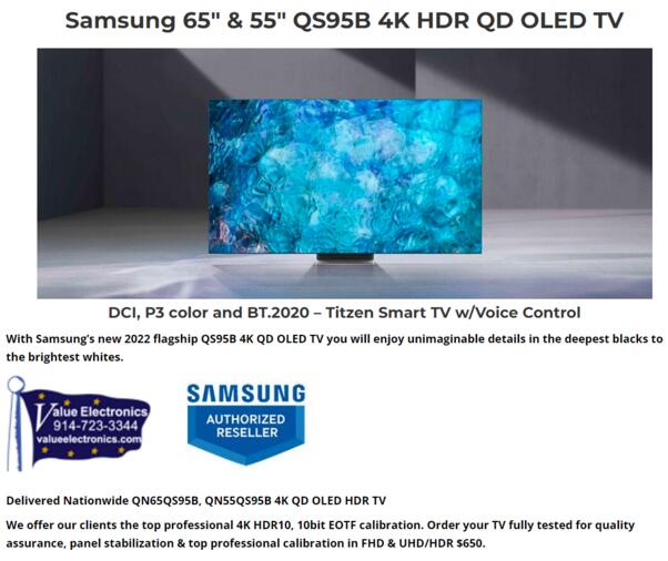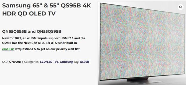 美國在線零售商ValueElectronics現已上架三星QS95B QD-OLED電視的頁面,甚至目前該頁面仍未被撤下,盡管三星未提供有關該產品的官方詳情。