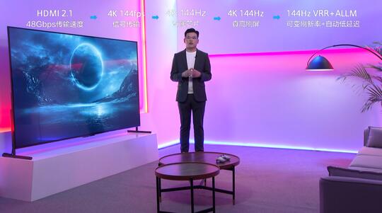 T7E在接口上采用的HDMI 2.1,支持48Gbps傳輸速率,可傳輸4K 144Hz信號。芯片上采用了一顆專屬定制芯片MT9652PLUS,支持144Hz信號解碼處理。屏顯端采用一片原生物理4K 144Hz真高刷大屏,可無損顯示4K 144Hz圖像內容。支持144Hz VRR動態刷新率和ALLM自動低延時。