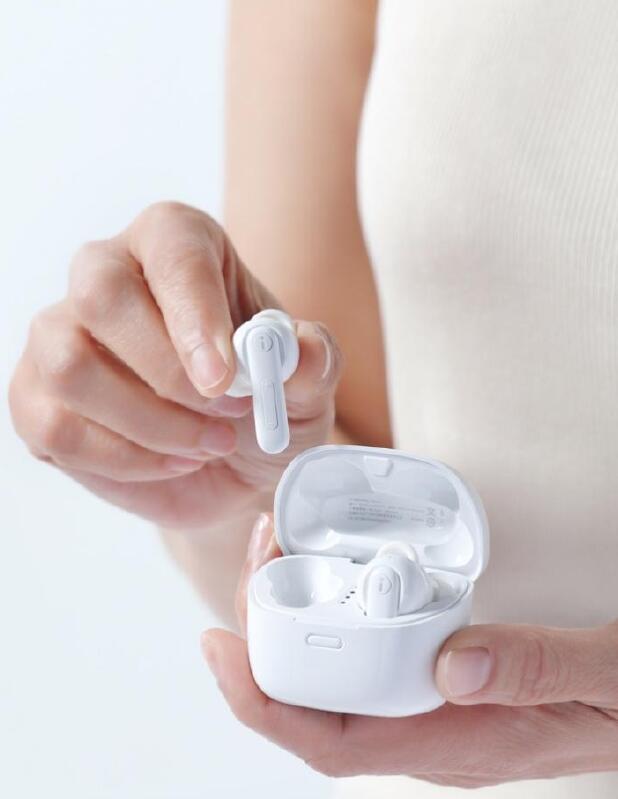 區(qū)別于傳統(tǒng)助聽器“顯眼”的外觀,訊飛智能助聽器采用流行的TWS耳機(jī)造型,貼合耳道,佩戴體驗(yàn)更舒適,這個(gè)耳機(jī)造型也減輕了患者佩戴時(shí)的心里壓力。