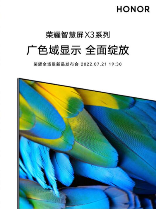 榮耀官方昨天宣布榮耀智慧屏X3將在7月21日亮相榮耀全場景發(fā)布會(huì),“超實(shí)力真色彩,天地萬物纖毫畢現(xiàn)”,榮耀智慧屏X3系列支持廣色域顯示。