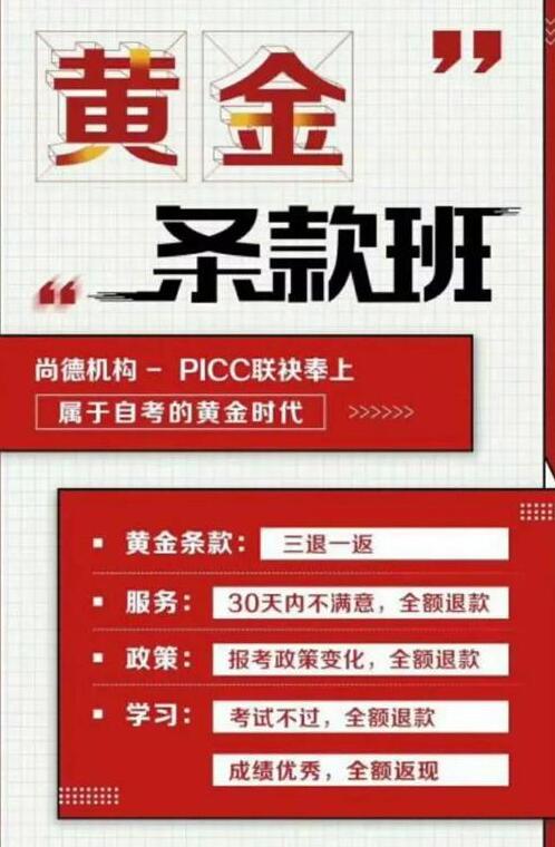 海報(bào)顯示,此產(chǎn)品與中國人保財(cái)險(xiǎn)合作,秉承“三退一返”的原則,即30天不滿意、報(bào)考政策變化或考試未通過時(shí),均可拿到全額退款。“那位老師跟我推薦時(shí)說,尚德是上市公司,是很有保障的,加上海報(bào)上對(duì)退款解釋得非常明確,我就決定報(bào)名了。”張薇說。