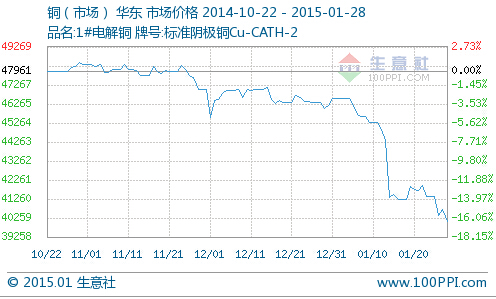 28日銅價大幅下滑,27日銅價為40703.75元/噸,28日價格跌至40092.5元/噸,跌幅為1.50%。