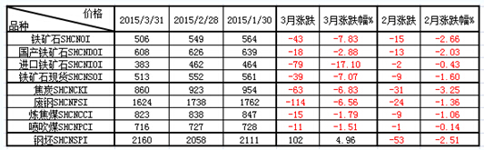 二、2015年3月份國產礦價跌勢趨大,進口礦價單邊暴跌,制造成本降幅隨之放大