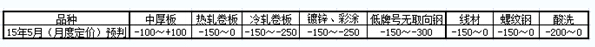 三、2015年5月份主流鋼廠主要普碳品種出廠價格變化幅度判斷