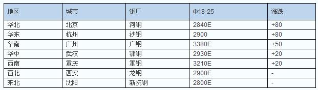 華東市場江浙滬全線大漲,上海、杭州、南京、蘇州、溫州等漲50-80,臺州漲100,現杭州沙鋼400三級大螺2900元/噸。山東市場跌幅明顯收窄,濟南、青島、臨沂跌10-20,現濟南萊鋼HRB400Eφ16-25mm螺紋鋼3000元/噸。安徽市場基本止跌,合肥漲50,馬鞍山穩中漲10,蕪湖穩,現合肥馬鋼HRB400φ16-25mm螺紋3060元/噸。江西市場止跌反彈,南昌漲80,贛州漲50,九江漲20,現南昌南鋼HRB400Eφ16-25mm螺紋鋼2940元/噸。福建市場強勢回升,福州、廈門漲50-70,三明漲90,現福州三鋼 HRB400Eφ18-25mm螺紋鋼3030元/噸。
