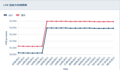 10月11日國(guó)內(nèi)鈷價(jià)上漲,鈷市行情上漲。10月11日鈷價(jià)391600.00元/噸,較月初10月1日鈷價(jià)381600.00元/噸上漲,漲幅2.62%。部分企業(yè)報(bào)價(jià)超40萬(wàn)元/噸,10月鈷價(jià)欲破40大關(guān)。