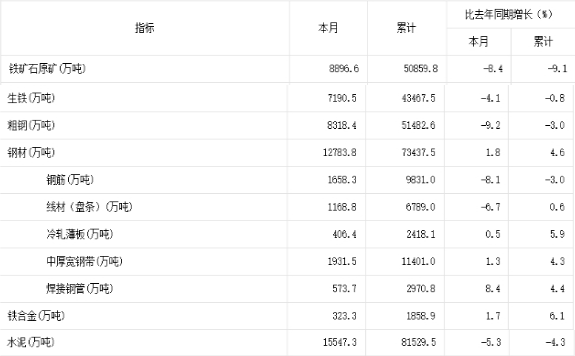 國家統計局7月17日公布的最新數據顯示:6月份鋼材產量為12783.8萬噸,同比增長1.8%。