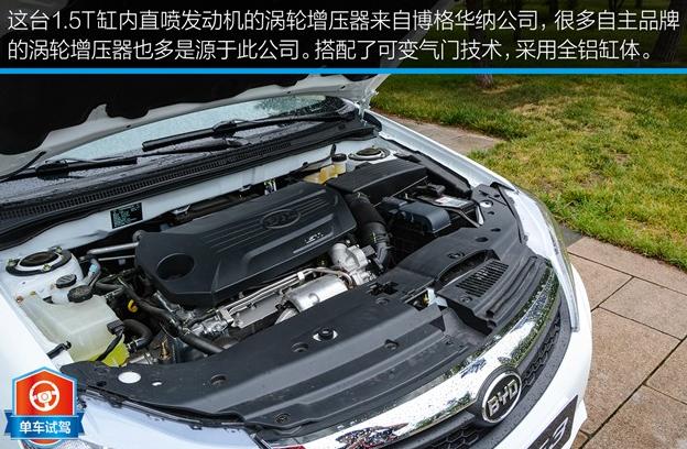 這臺1.5T發動機早已服役于旗下的速銳、G6、思銳車型上,是比亞迪自主研發的,內部代號為BYD476ZQA,渦輪增壓器采購于博格華納公司,為了能夠耐受汽油發動機極高的排氣溫度,這顆代號為KP39的渦輪增壓器配有水冷式軸承座,可為發動機高負荷運轉時提供更加穩定的工作狀態。該發動機整體賬面數據非常搶眼,最大功率為113kW(154馬力)/5200rpm,最大扭矩可達240Nm/1750-3500rpm,這種表現已經超過諸如長城C50、榮威350、中華H530的1.5T的數據了。