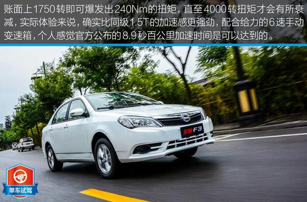 不久前我剛試駕過榮威350的1.5T車型,全新F3在試駕前我覺得應該沒什么太大差異,提速感并不怎么樣,然而當真正開上它時,它的動力表現可以明顯把榮威350區別開來,低扭爆發出的扭矩確實非常有力道,渦輪全力介入時可以隱約聽到嘶嘶的渦輪特有的工作聲,而且手動變速箱也比較給力,換擋行程較短,還有些吸入感,整個換擋過程比較順滑緊湊,對于喜歡激烈駕駛的朋友,這個變速箱不會讓你失望的。