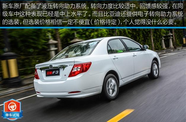 全新F3在做工上比老款強很多,用料也更講究一些,對于剛出廠的新車來說,車內并沒有濃重刺鼻的化學味道,作為5萬元-7萬元的車型來說,這個味道還是可以接受的。而啟動車輛后掛擋的時候,發現這個離合踏板真的是很較勁,踏板彈簧非常硬,踩下去還好,在找結合點時,真的很累,腳步要用力跟踏板回彈力度做斗爭,而離合結合點也較高,稍不注意就會熄火,因為試駕車隊里只有1輛手動擋車型,不知道這是不是個案,這種力度對女士駕駛者來說,需要適應。
