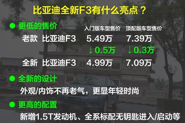 另據比亞迪官方介紹,老款F3更名為“經典比亞迪F3”,保留1.5L手動舒適型,與全新F3共市銷售,與新車形成高低搭配,以此再次拉低F3的售價,也可以滿足不同消費者的購車需求。