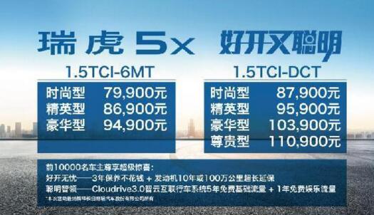 今日,奇瑞全新小型SUV瑞虎5x正式上市,售價區間為7.99-11.09萬元。本次共推出7款車型,手動擋3款,自動擋4款。