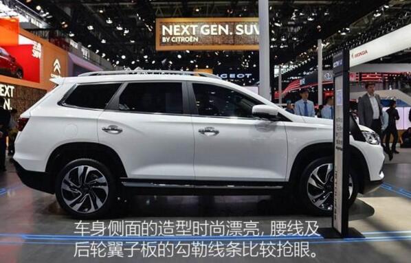 回顧外觀,捷途X90采用了全新設計語言,前臉盾形進氣格柵內部由三根粗壯的橫向幅條填充,兩側則與多邊形的大燈組相接,營造了大氣的整體風格。側面來看,其車身側面的線條較為豐富,側窗邊框及黑色包圍等處嵌入了鍍鉻飾條,搭配銀色車頂行李架和20英寸雙五輻雙色輪圈,看上去更顯精致。此外,新車還配備了全景天窗。