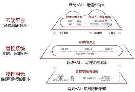 同時、白皮書建議以L4級(高度自動駕駛網絡)作為未來架構的階段性目標,應該具備以下四個特征:一、網絡知識和專家知識數字化,從被動的人工運維走向預測性的智能運維;二、極簡架構的網絡基礎設施,網元走向智能化;三、分層的單域自治和跨域協同,網絡走向在線實時閉環;四、統一的云端AI訓練、知識管理和運維設計平臺,支持電信網絡迭代演進。