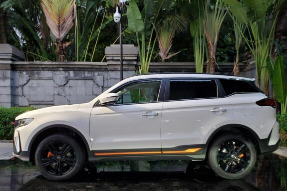 車身側面,新車側面基本延續了博越家族車型的設計風格,包括硬朗的腰線以及懸浮式車頂設計均得以保留。同時配合新增的后排隱私玻璃,側面的整體感和質感都有明顯的提升。同時,輪圈的黑化自然也是主打運動車型的“必修課”。