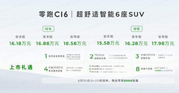 6月28日晚間消息,電動汽車公司零跑科技在金華召開零跑C16上市發布會,該車定位家庭6座SUV,分純電、增程兩個版本,上市指導價格15.58-18.58萬元。